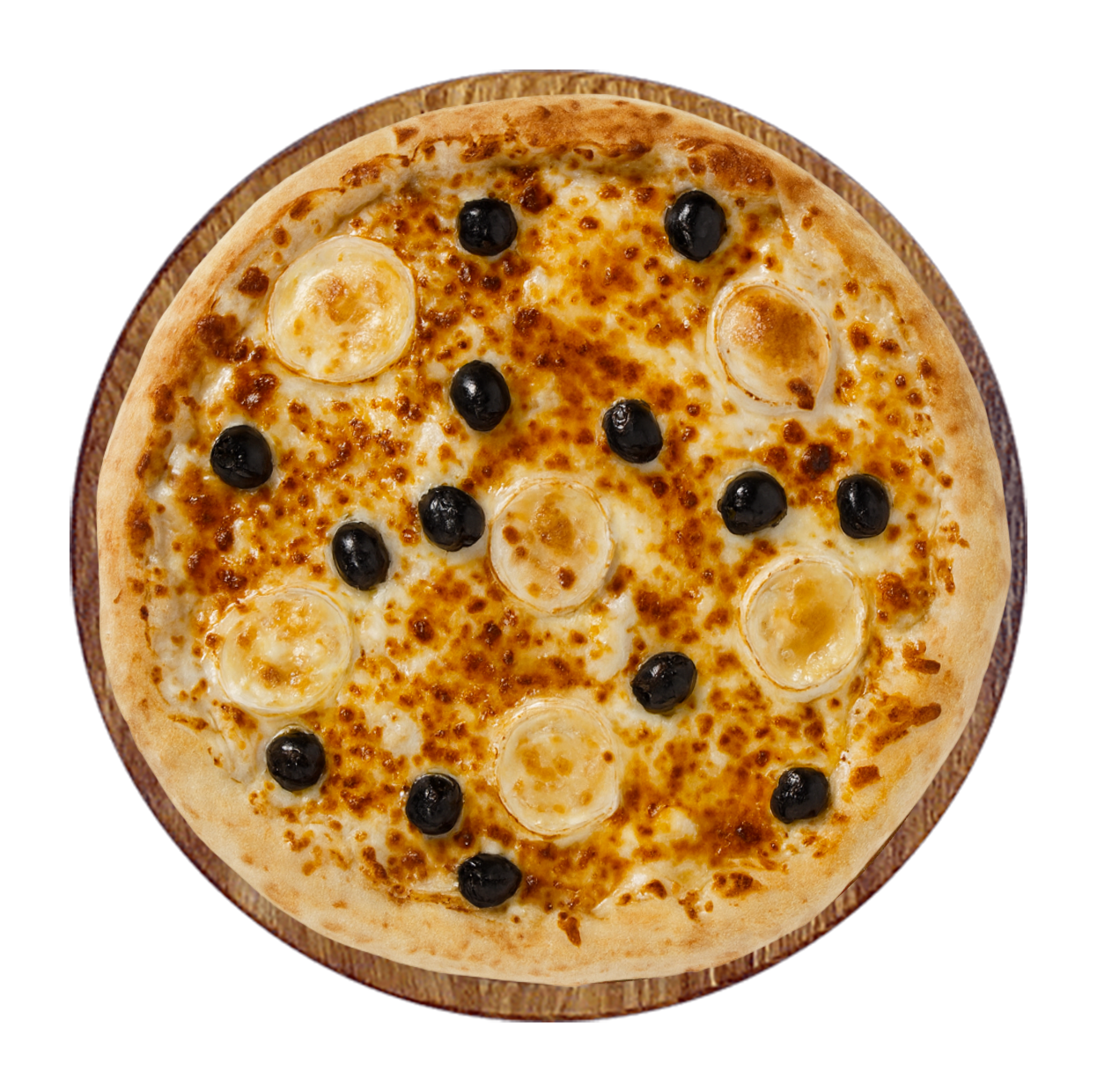 Crème fraîche, mozzarella, poulet fumé, chicken curry, oignons rouges, champignons, boursin.