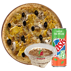 1 Pizza Medium au choix 1 Dessert au choix + 1 Boisson 33cl au choix.