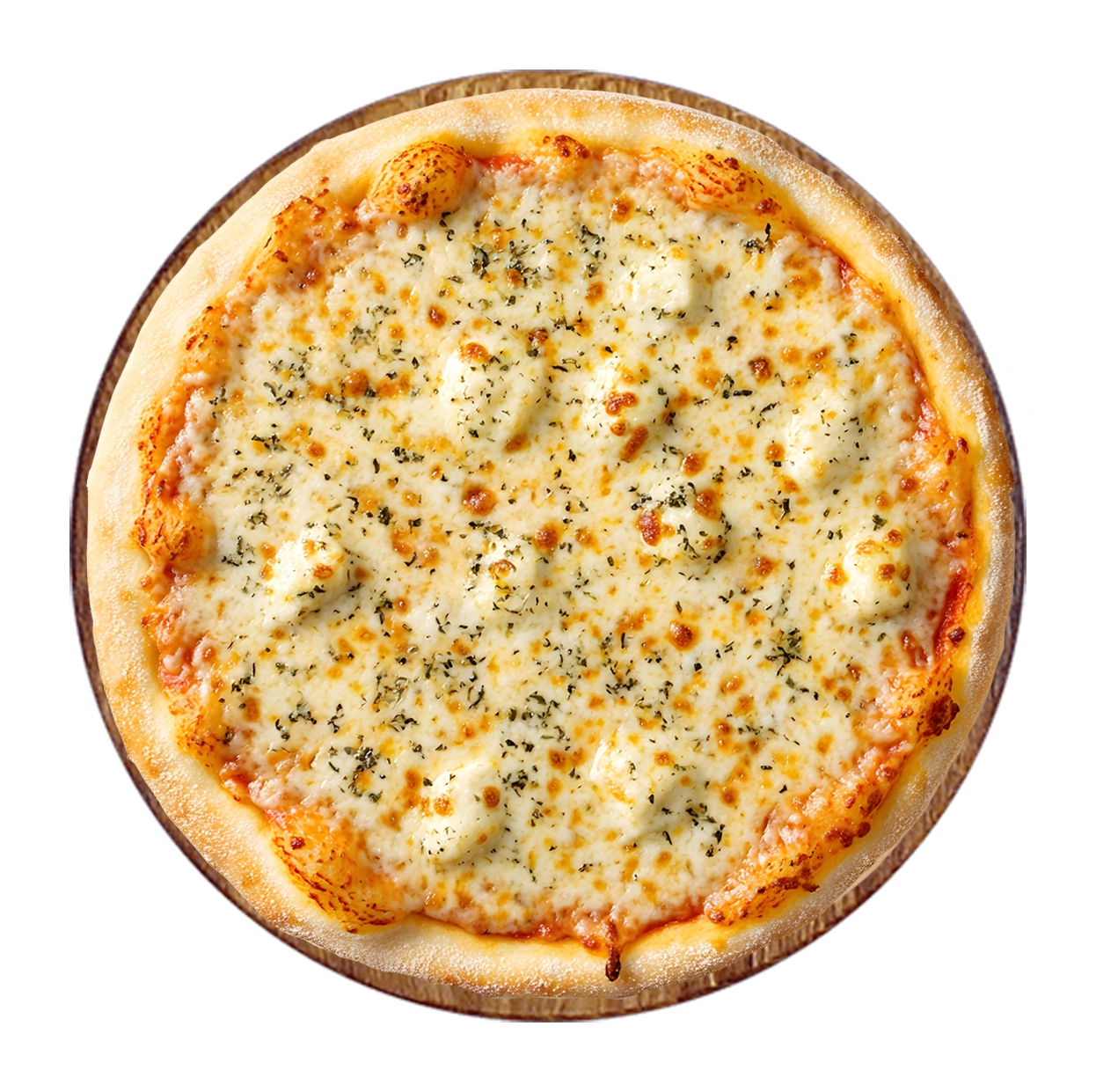 Sauce tomate, mozzarella, bleu, chèvre, emmental, parmesan.