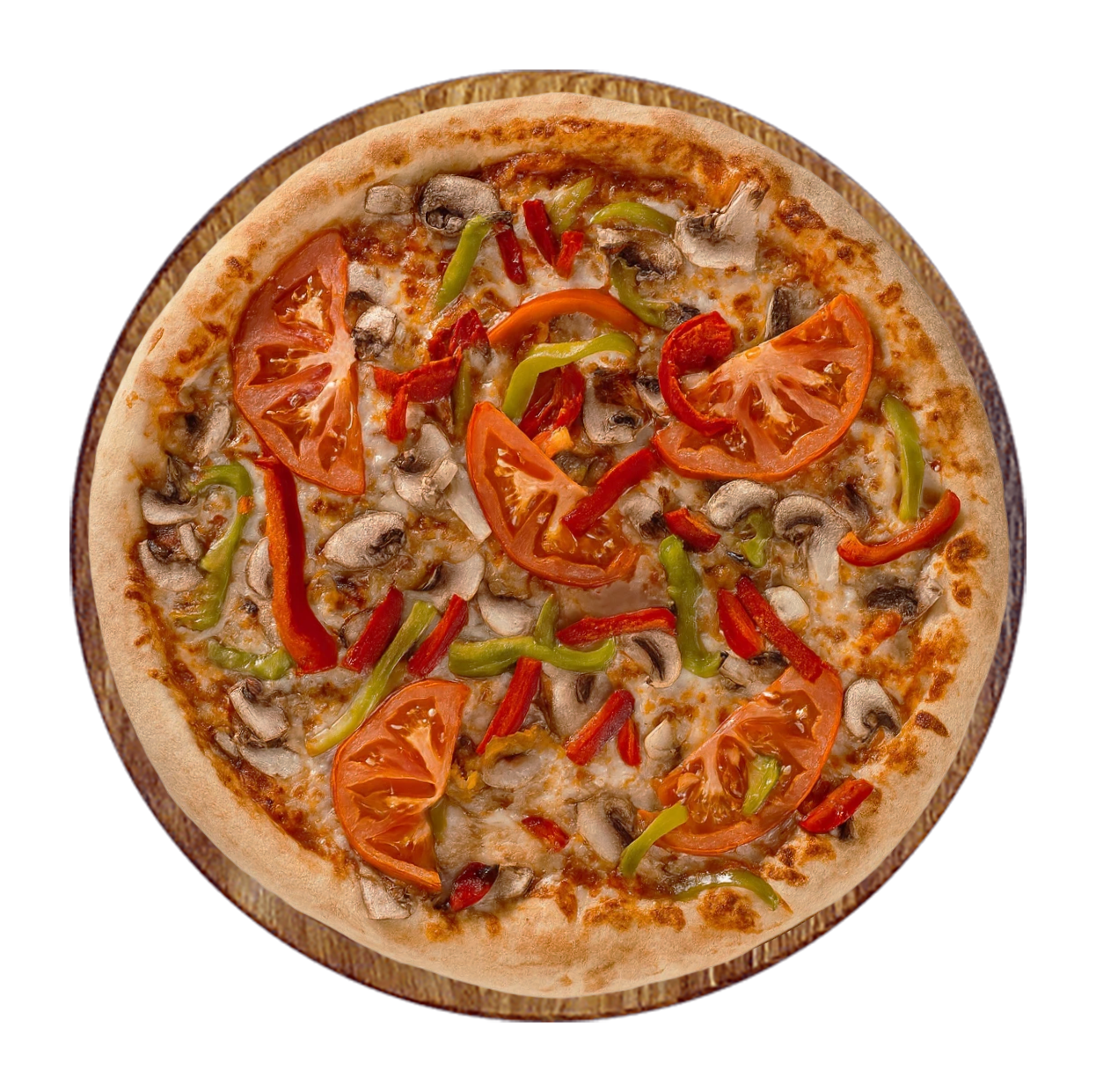 Sauce tomate, mozzarella, tomates fraîches, poivrons, olives, champignons.