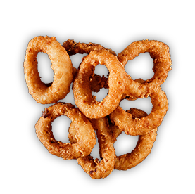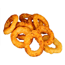 Rondelles d'oignons enrobées d'une fine couche de chapelure.