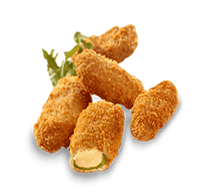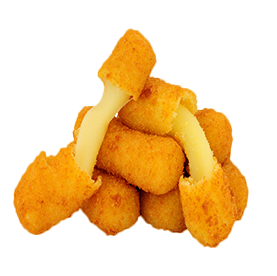 Bâtonnets de mozzarella enrobés d'une fine couche de chapelure.